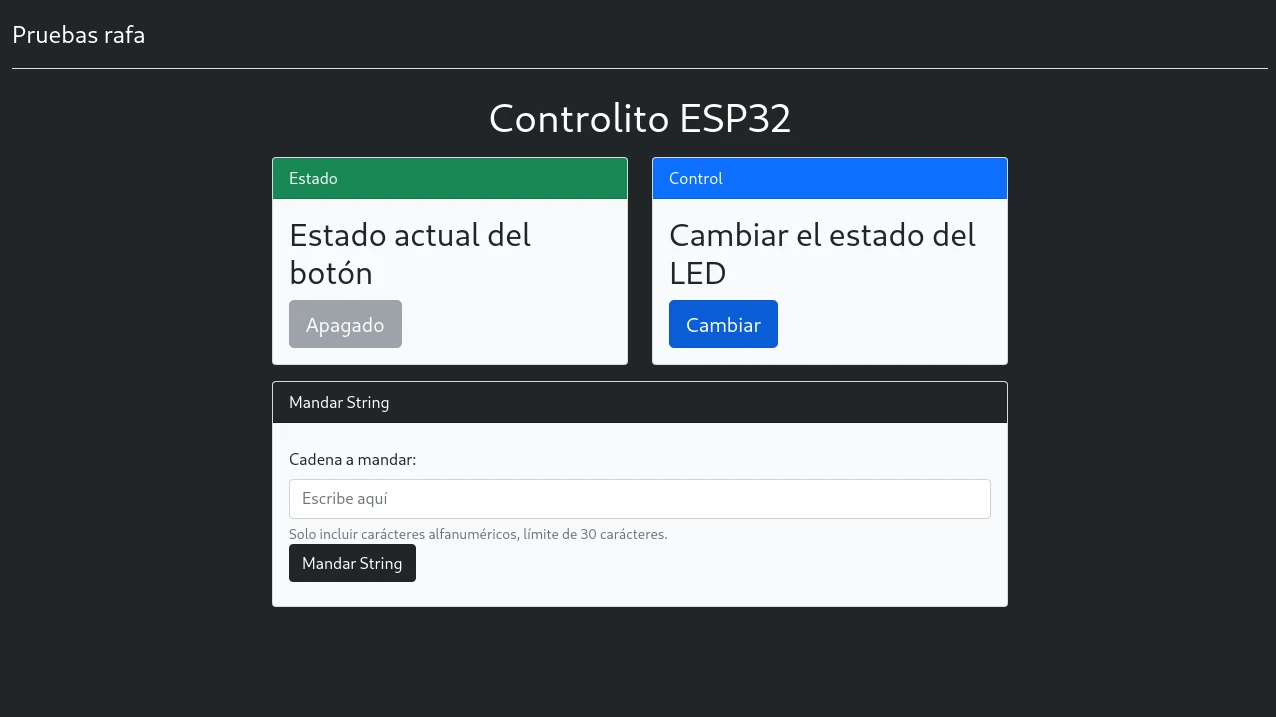 Interfaz web para familiarizarse con PlatformIO, Websockets, programación de sitios web, y varias características del ESP32. Consiste en un LED rojo y una pantalla OLED de 128x32 los cuales pueden ser controlados desde una interfaz web a través del navegador (ordenador o teléfono). Completamente responsivo para cualquier tamaño de pantalla.